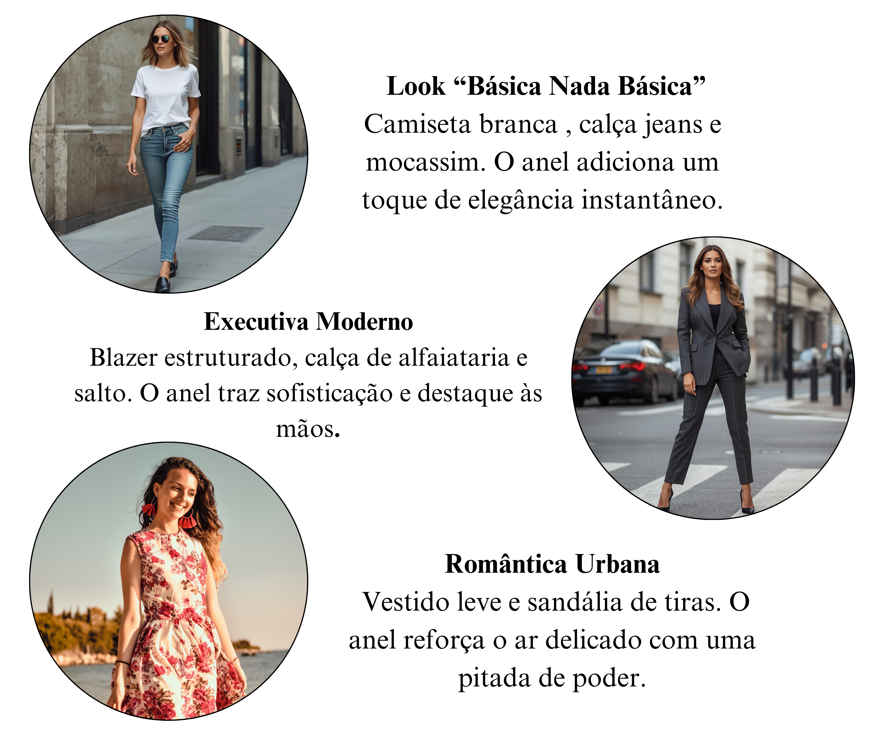 O Anel Dourado Olhei e Apaixonei foi feito exatamente para lembrar disso. Com design moderno e acabamento reluzente, ele traduz personalidade e confiança em cada detalhe. Uma peça que combina com todos os momentos do dia e que parece dizer, silenciosamente: “sou única, e isso é o meu poder” . Minimalista, mas cheio de presença, esse anel é o toque final que transforma qualquer look em algo marcante. Seja no trabalho, no jantar com as amigas ou em um evento especial, ele brilha com você — sem precisar competir.