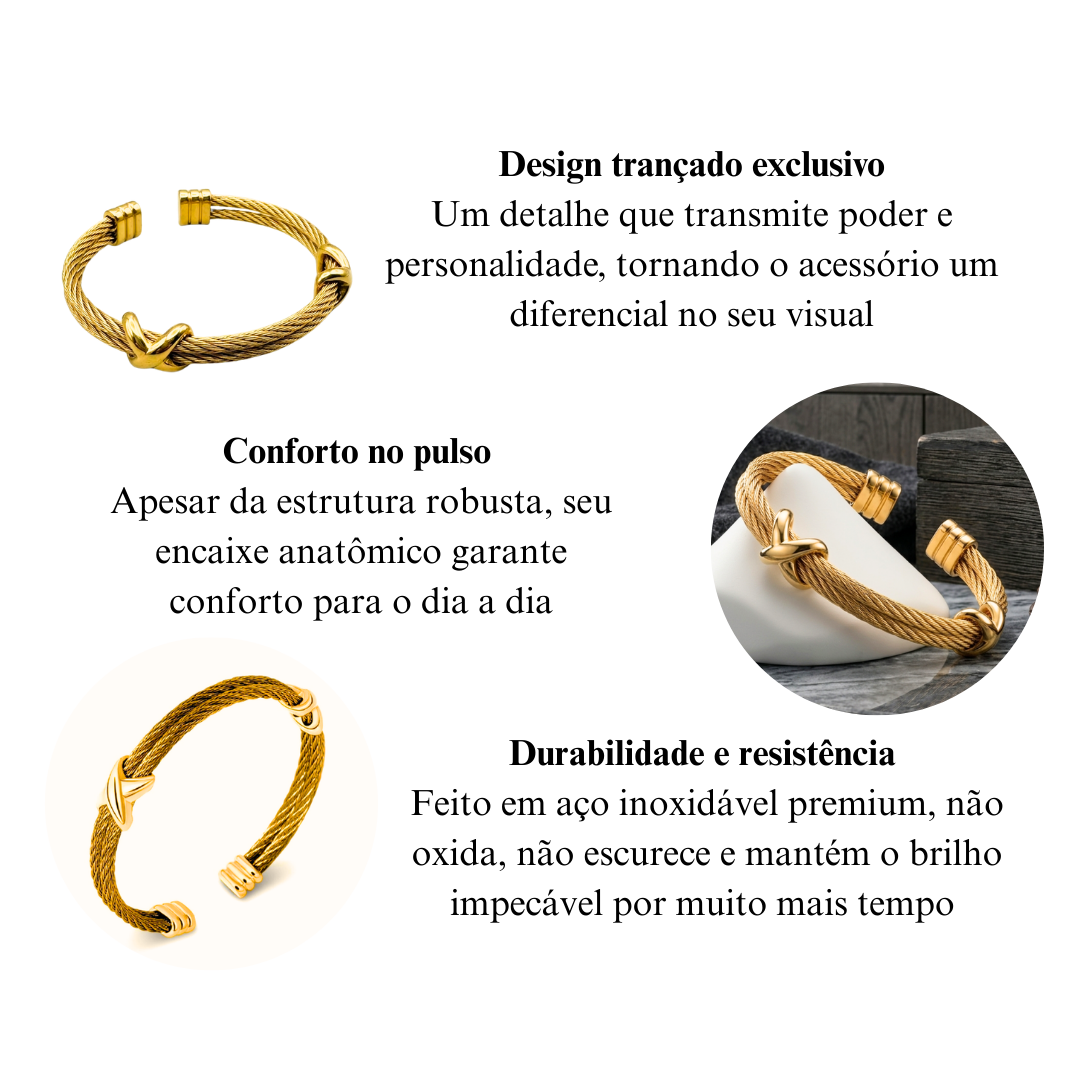 O Bracelete de Aço Inox Trançado Dourado é mais do que um acessório – é um símbolo de personalidade e bom gosto. Seu design sofisticado e sua construção resistente fazem dele uma peça essencial para quem busca elegância sem abrir mão da autenticidade.
