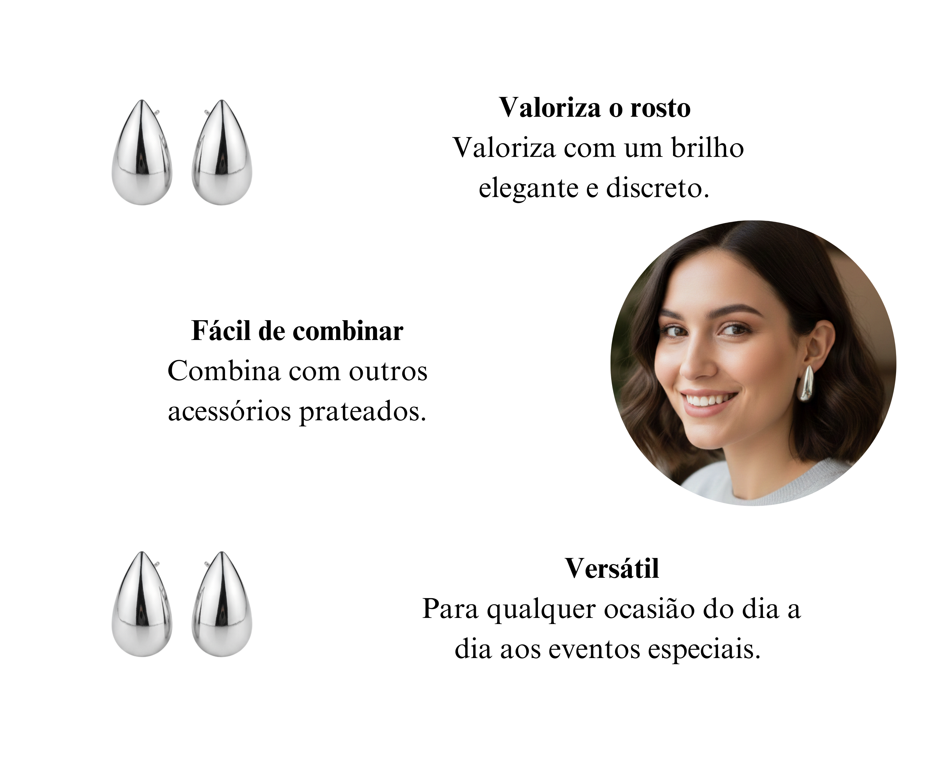 O Brinco Aço Inox Prateado Gota Elegance é o tipo de acessório que resolve o visual com facilidade. Ele entrega elegância sem exagero, combina com praticamente tudo e transmite uma imagem de cuidado e sofisticação em qualquer ocasião. Ter uma peça versátil assim no guarda-roupa significa ter sempre uma opção segura, bonita e atemporal para completar o look com confiança e estilo.