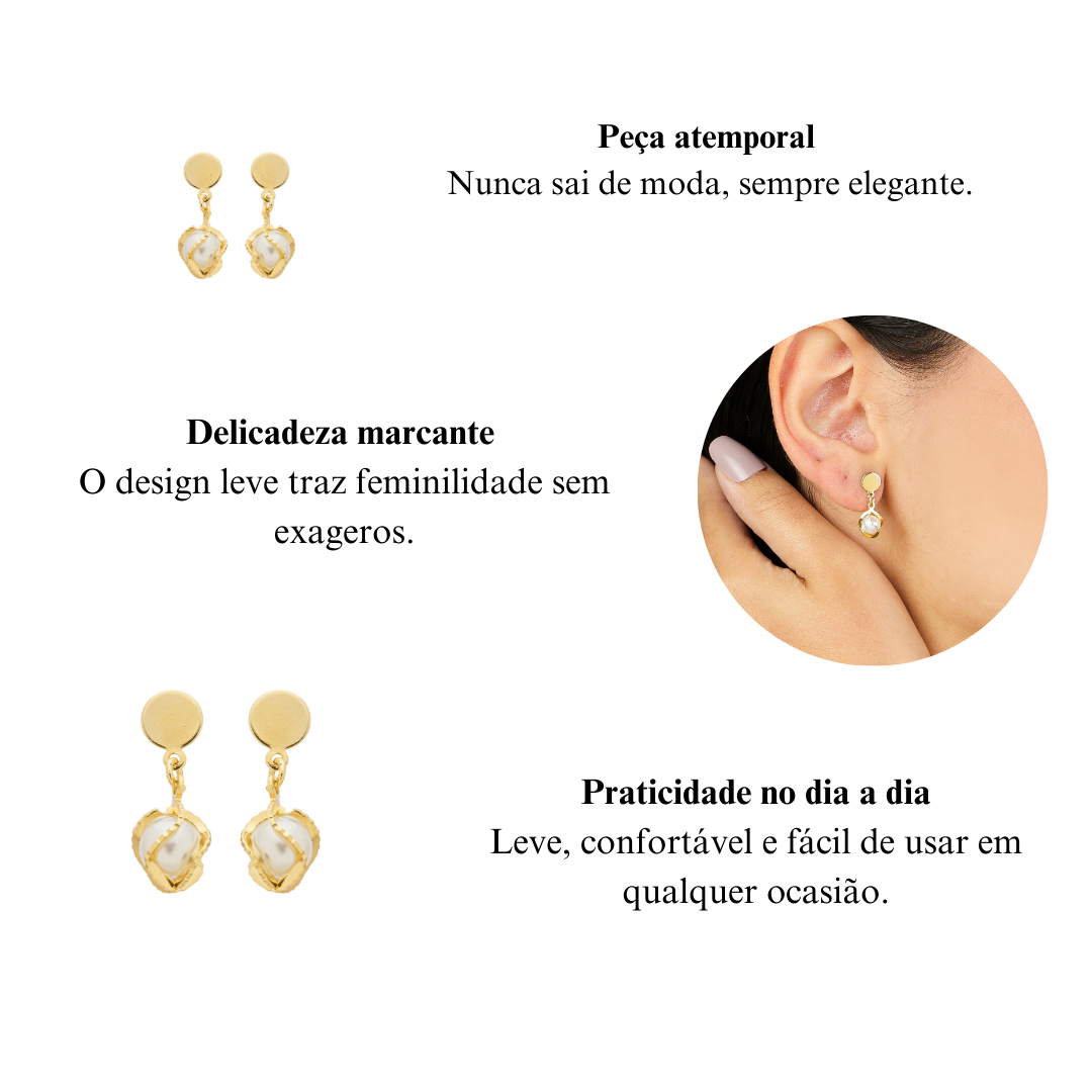 O Brinco de Pérola Deixa Que Me Viro é aquele acessório que une o clássico e o moderno em uma só peça. Com base dourada e pérola envolta em detalhes sofisticados, ele traz um charme único que ilumina o rosto e adiciona elegância instantânea ao visual. É delicado, marcante e versátil — perfeito para quem quer resolver o look sem complicações, mas com muito estilo.