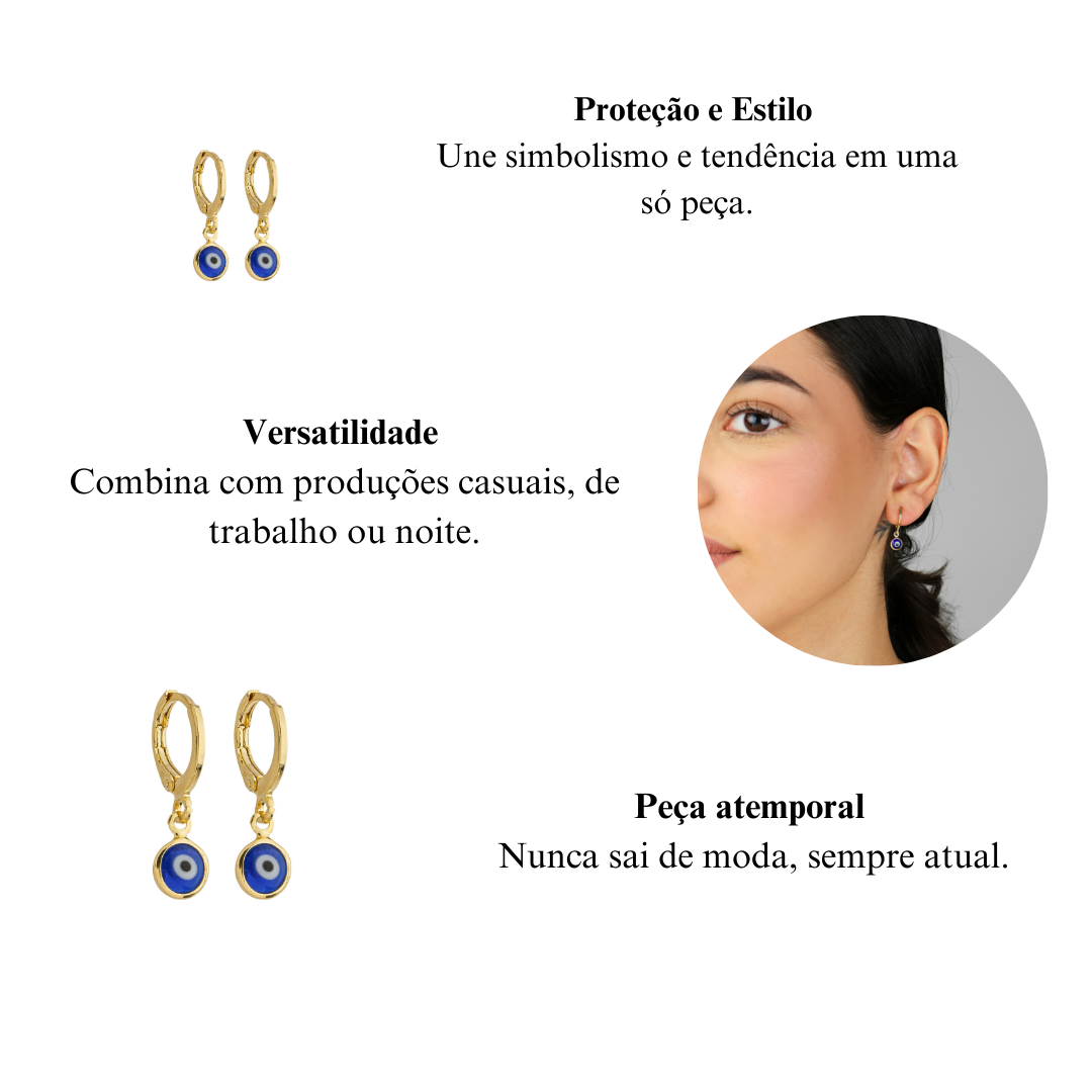 Use com colar de olho grego para reforçar a proteção e criar harmonia.Combine com pulseiras coloridas ou de miçangas para um look boho.Aposte em anéis dourados delicados para destacar ainda mais o brinco.