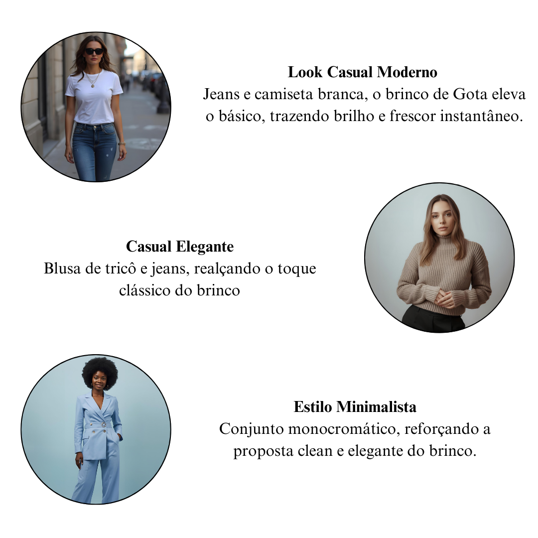 Use com um colar prateado minimalista para um look discreto e elegante.Combine com pulseiras finas em prata para equilibrar o visual.Crie contraste usando anéis com pedras coloridas junto ao brinco.