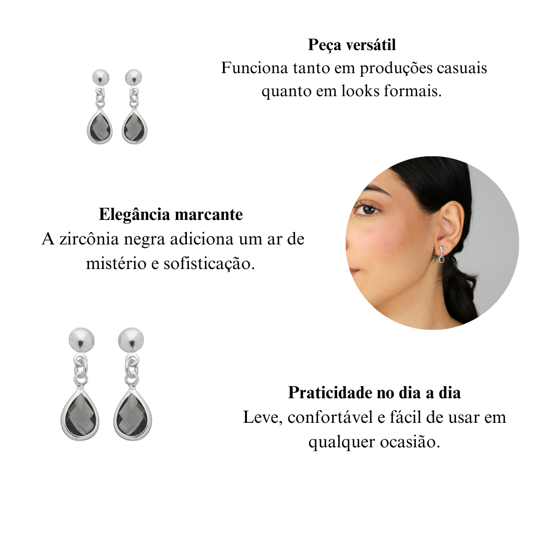 Um clássico moderno que traz mistério, elegância e estilo. O Brinco Zircônia Negra em Gota Só Mais Um Café é perfeito para quem deseja um acessório que se destaque pela sofisticação sem perder a versatilidade. O design em gota com acabamento prateado e a zircônia negra facetada refletem a luz de maneira única, criando um contraste marcante que valoriza qualquer produção.