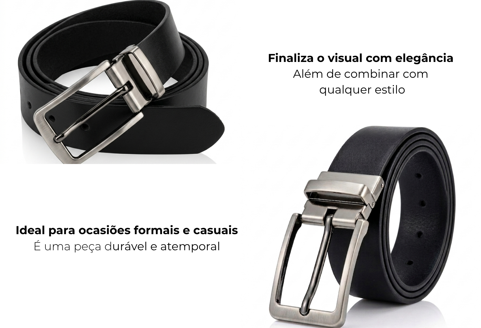 Existem peças que passam despercebidas e existem aquelas que organizam todo o visual. O Cinto Atlas Black é exatamente isso: a base sólida de um homem bem vestido. Com design minimalista, acabamento em preto intenso e fivela metálica sofisticada, ele entrega equilíbrio entre elegância e força. É o tipo de peça que não chama atenção pelo excesso, mas pela precisão.