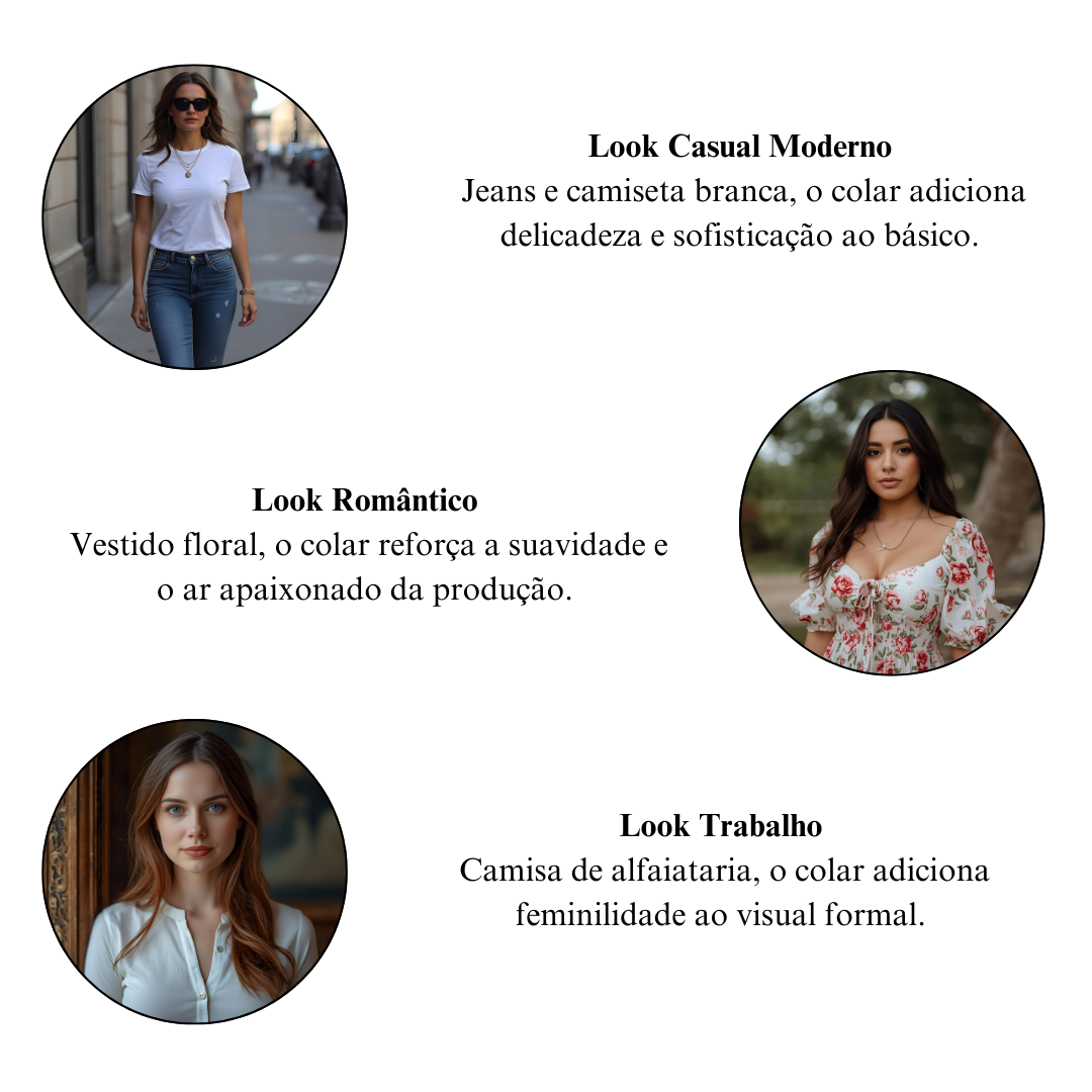 Use-o com brincos para criar um conjunto minimalista, ou adicione pulseiras e anéis dourados para um visual mais marcante. Se quiser ousar, combine com peças com pérolas para contrastar delicadeza e brilho.