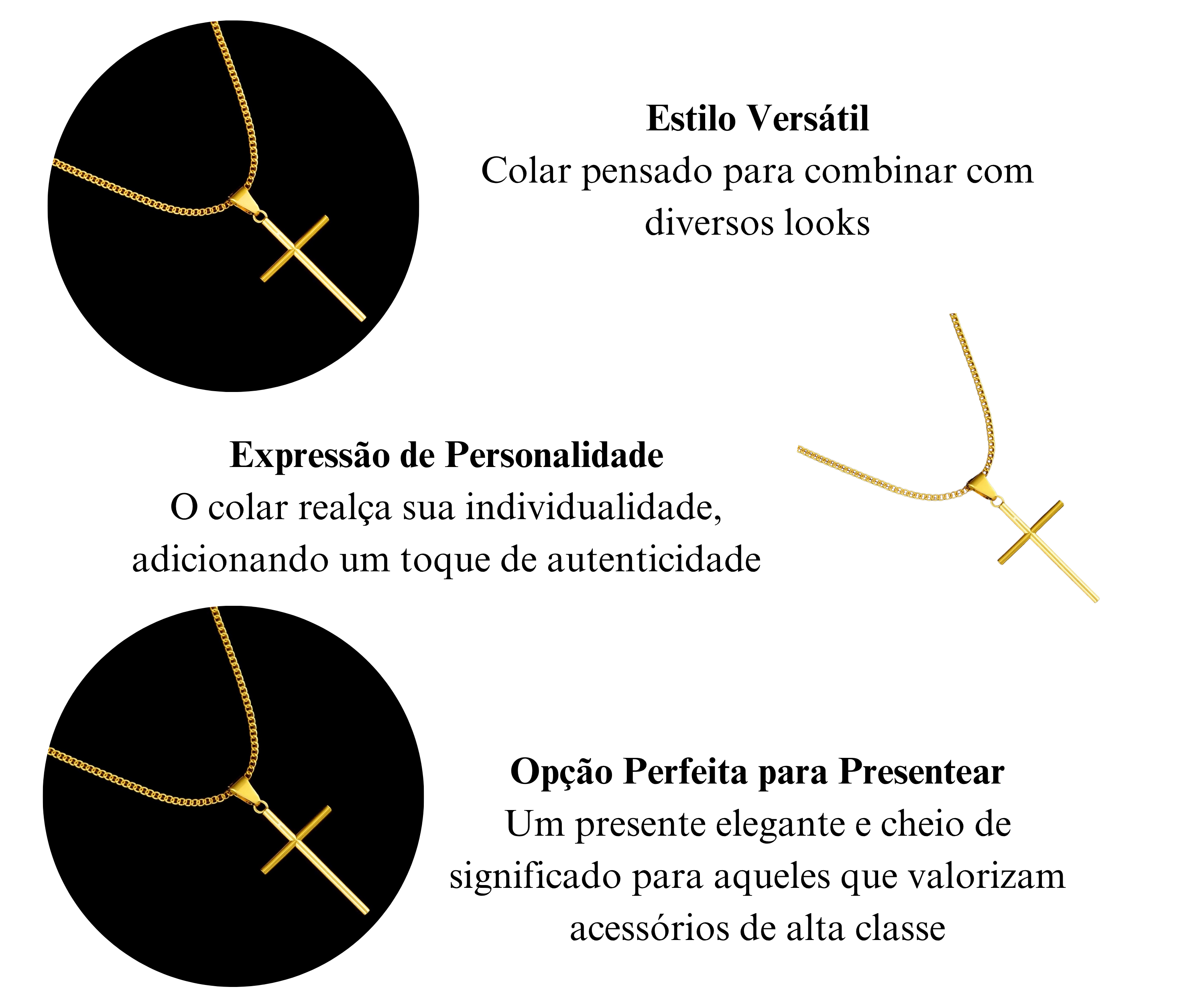 O Colar Aço Inoxidável Minimalista Slim Cross Dourado é a escolha perfeita que permite criar diferentes combinações, adaptando-se a diversas ocasiões e refletindo sua autenticidade. Ele é ideal para quem valoriza acessórios que traduzem atitude, sofisticação e um toque moderno.