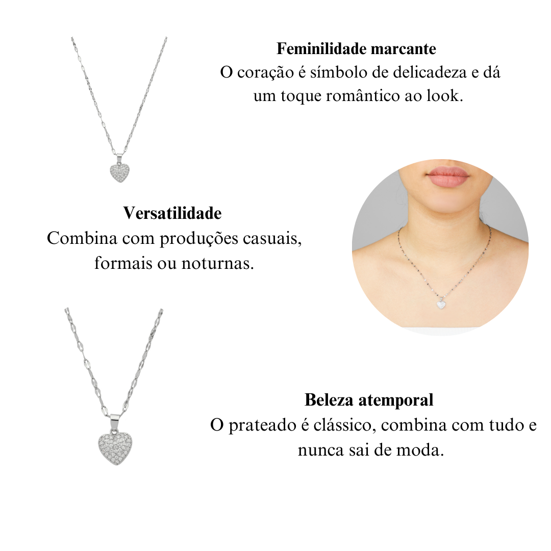 Porque o Colar Coração Prateado de Aço Apaixonada Pela Paz é mais do que um acessório: ele é uma expressão de personalidade, sofisticação e delicadeza. Um investimento inteligente no seu visual, capaz de transformar o simples em marcante e garantir que você esteja sempre pronta para qualquer ocasião.