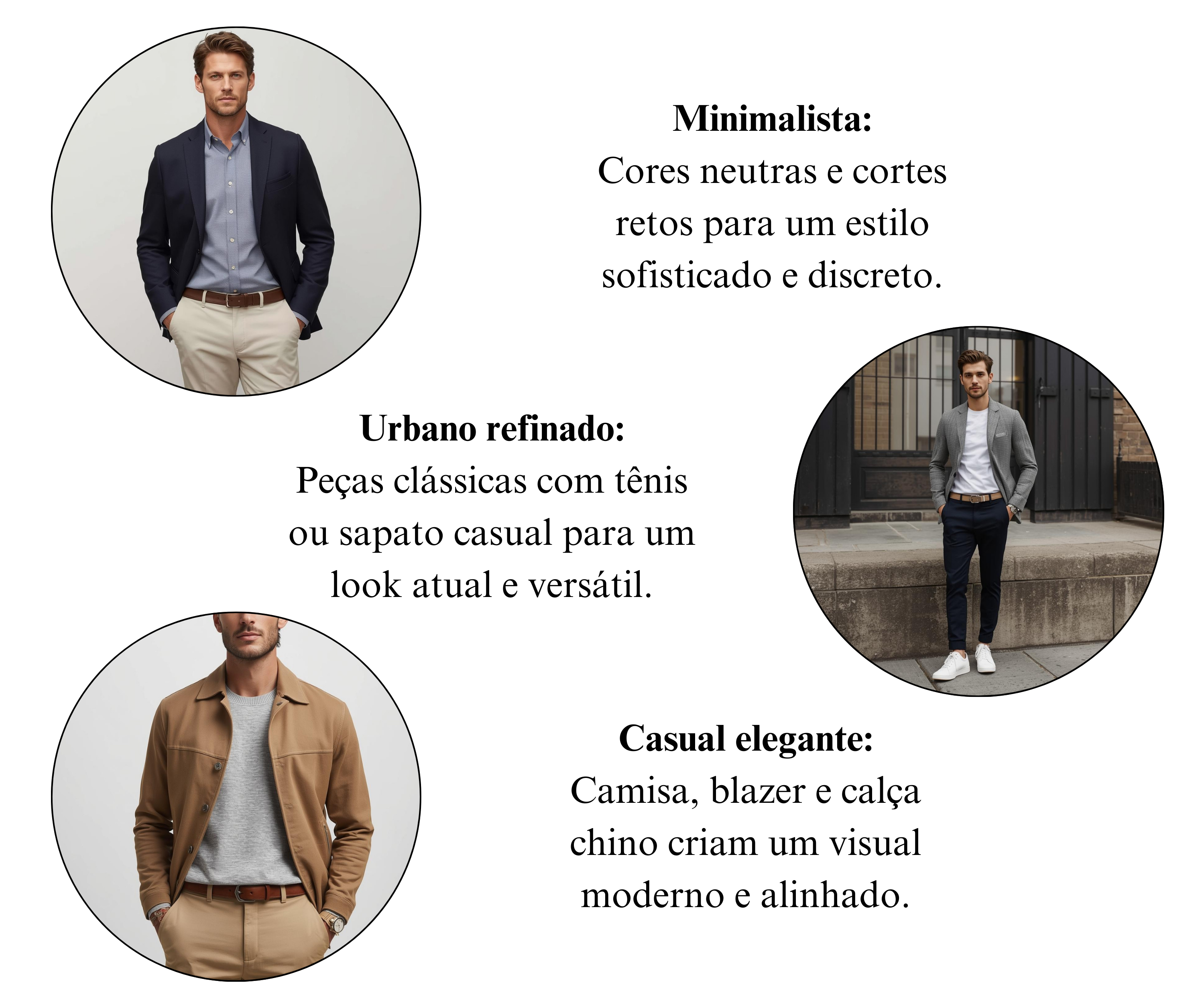 Funciona muito bem com camisetas lisas, polos, camisas bem estruturadas e jaquetas. Aposte em tons neutros como preto, cinza, azul-marinho, branco e bege. O Atlas também complementa looks com alfaiataria casual, trazendo sofisticação sem exagero.