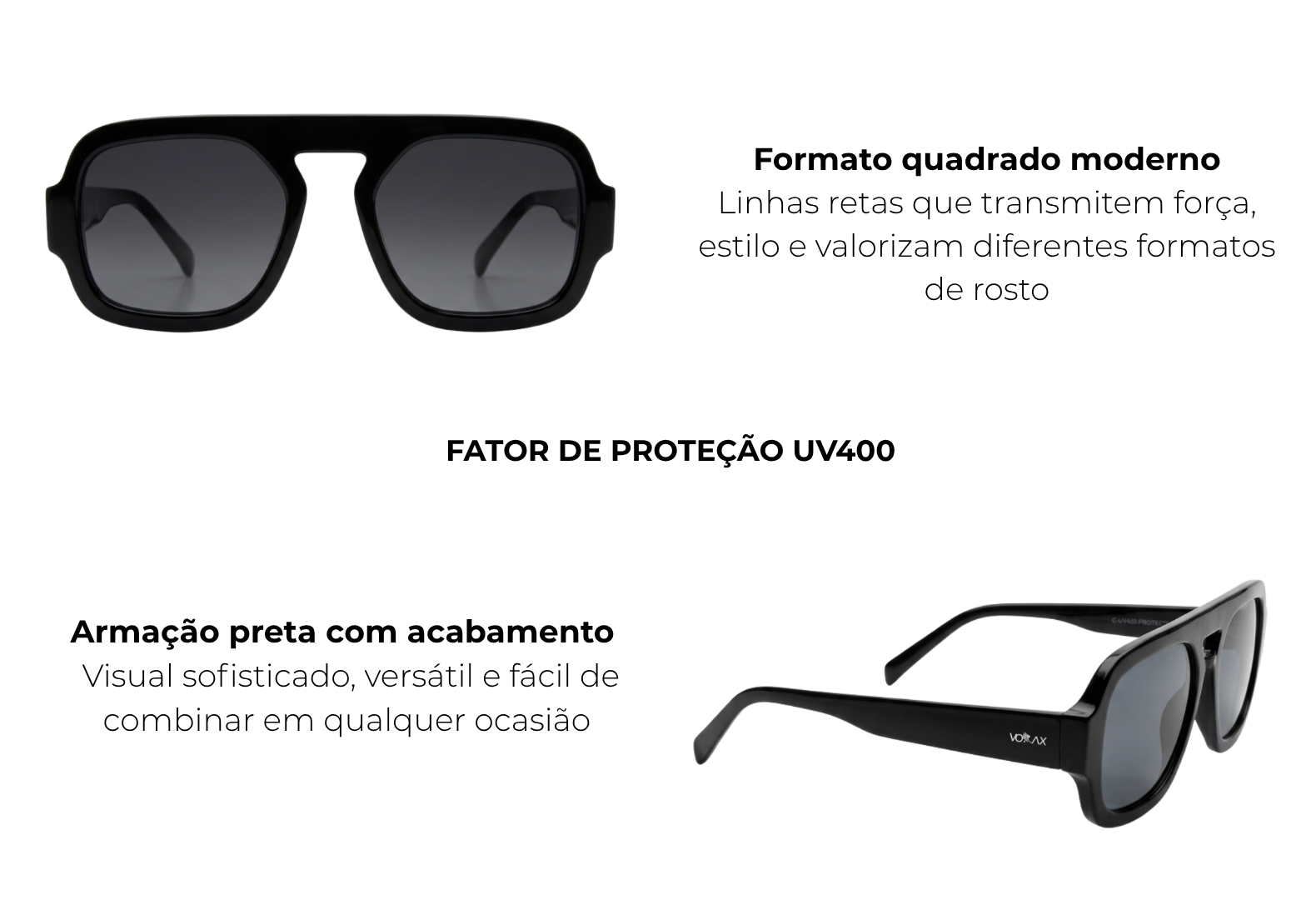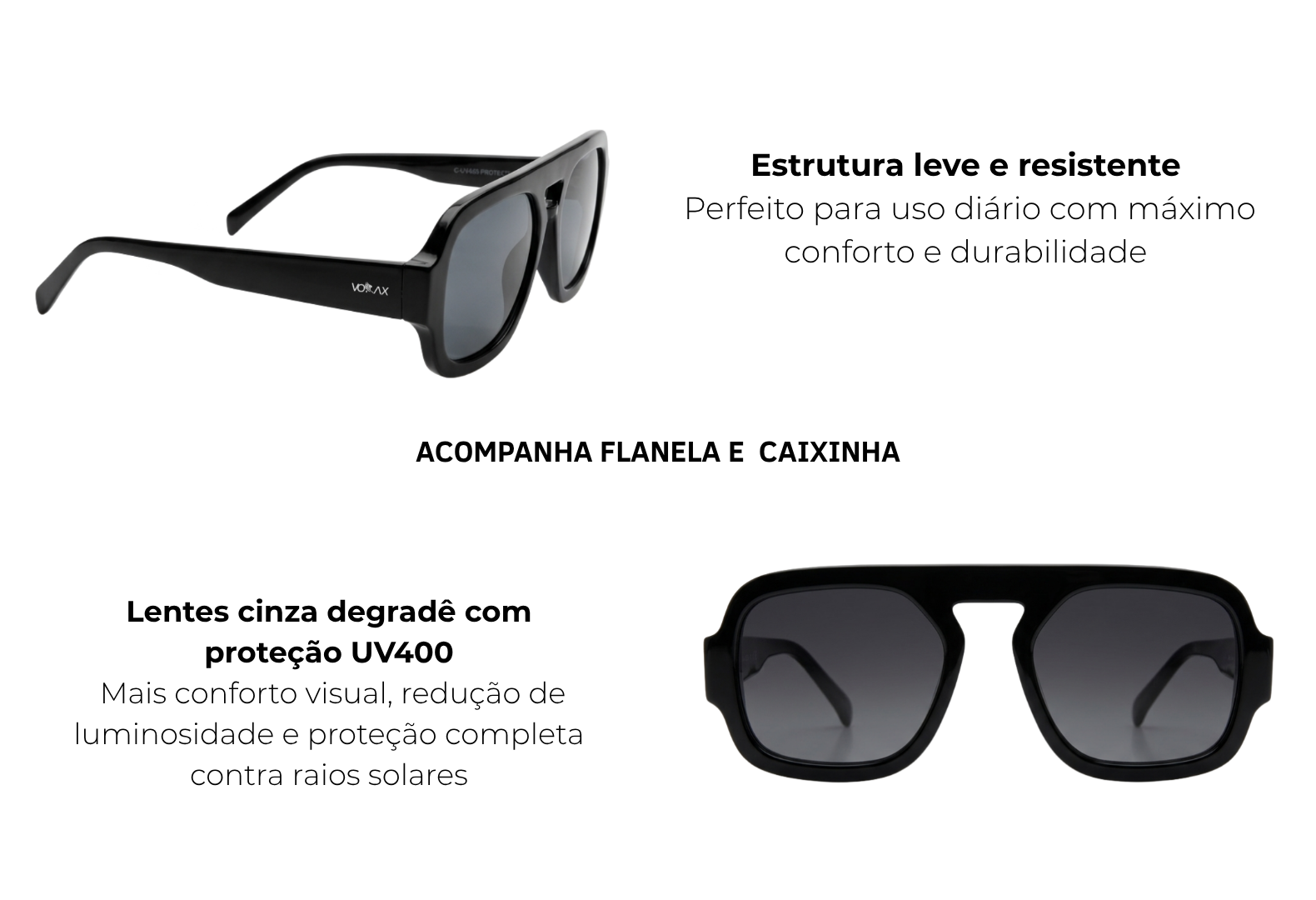 O Óculos de Sol Obsidian Black não é só um acessório é uma afirmação de estilo. Inspirado na intensidade da pedra vulcânica mais sofisticada, ele carrega uma estética forte, minimalista e extremamente elegante. A armação preta com presença marcante se une às lentes em degradê para criar um visual moderno, imponente e cheio de personalidade.