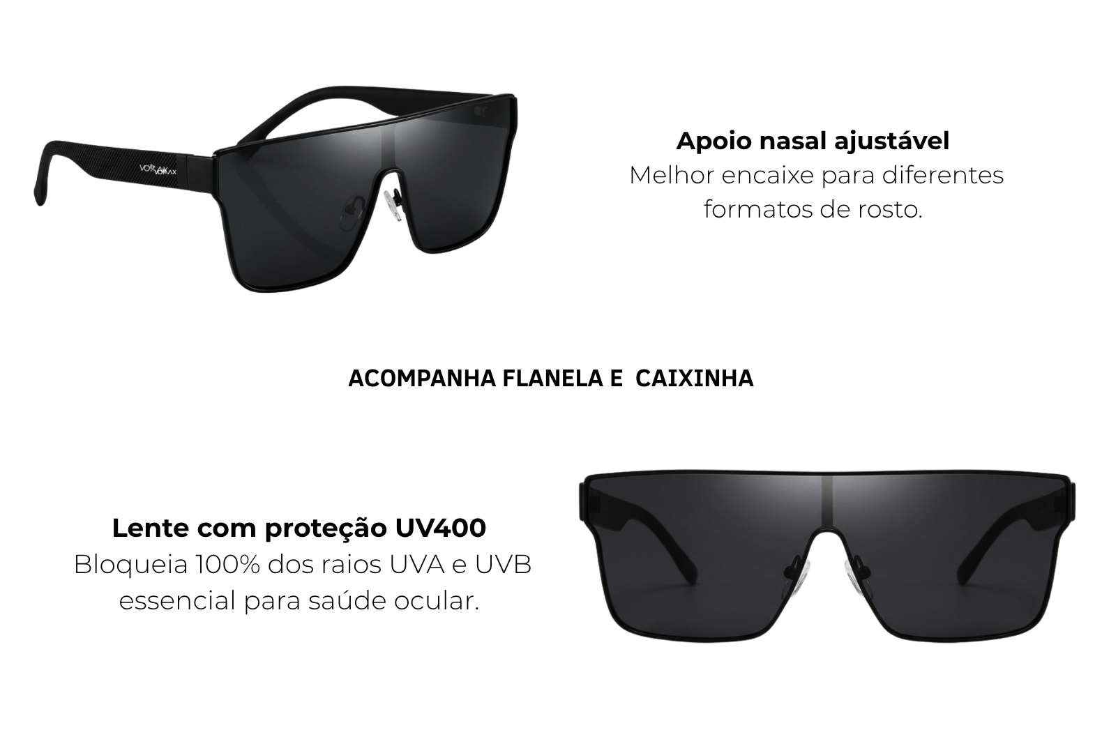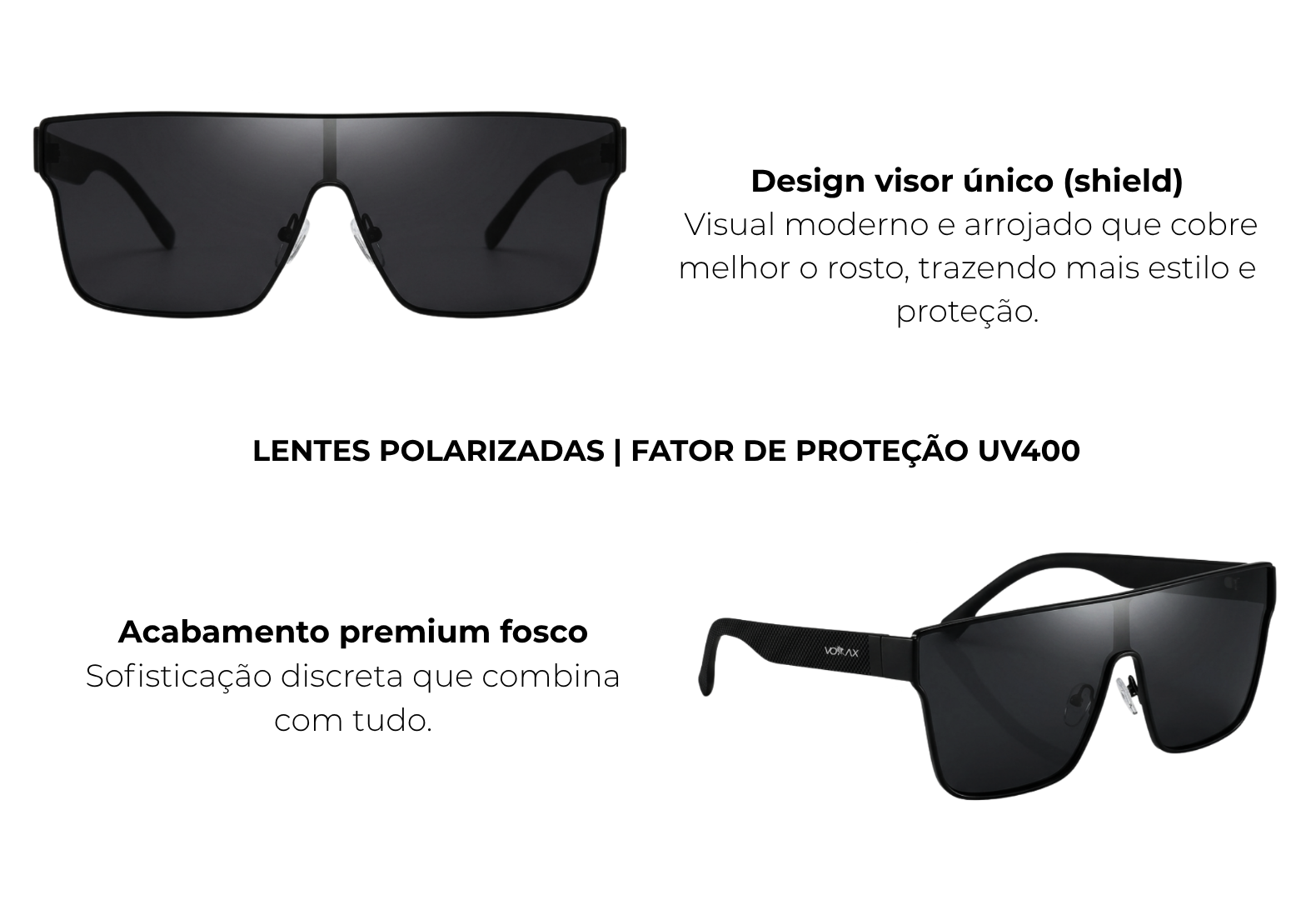 O Óculos de Sol Premium Black Shield é a escolha certa. Com design futurista e lente única contínua, ele transmite atitude, confiança e sofisticação em cada detalhe. Não é apenas um óculos é uma declaração de estilo.