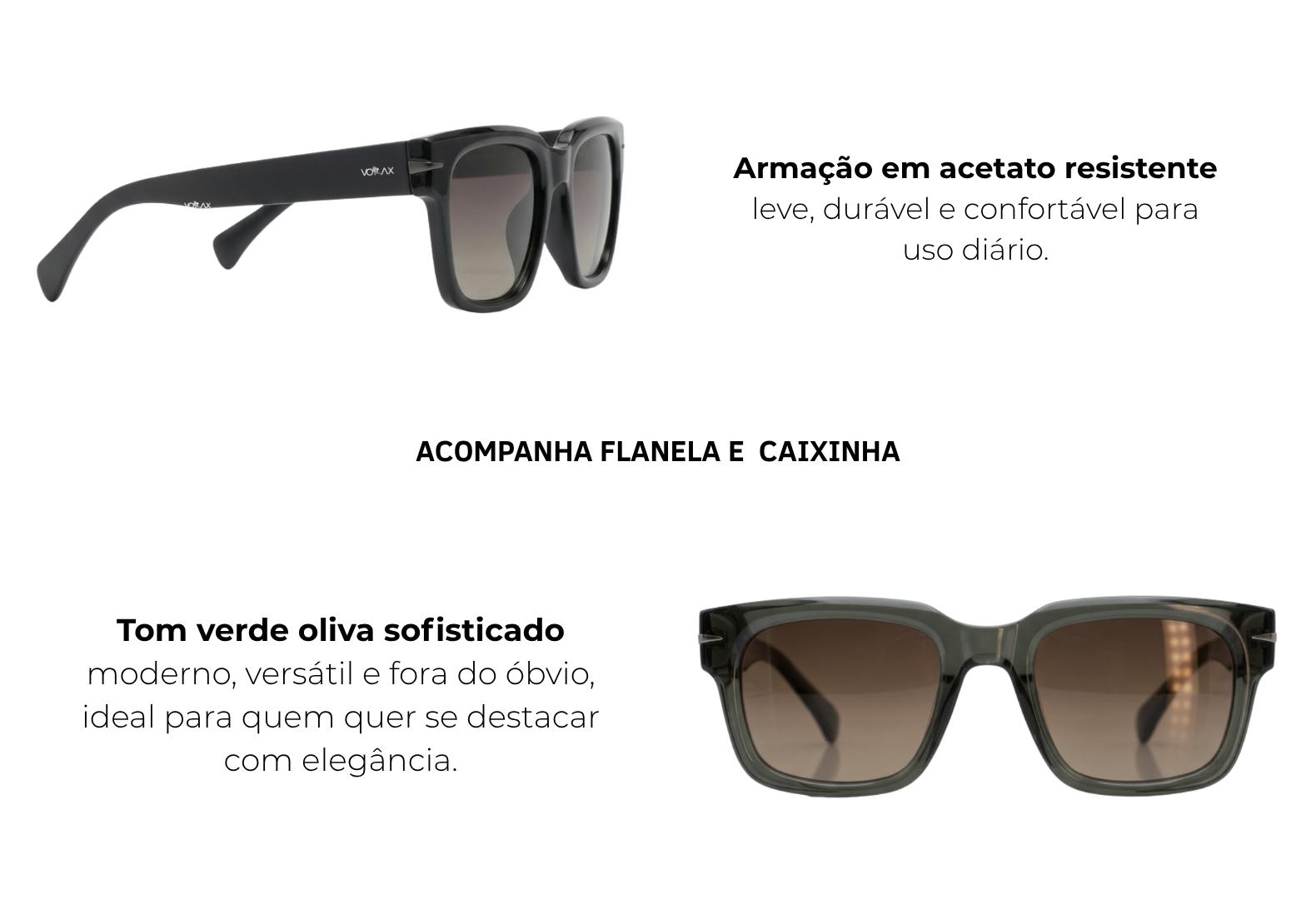 O Óculos de sol Premium Sierra Olive é aquele acessório que entrega presença instantânea, valoriza qualquer produção e reforça sua imagem com estilo e confiança sem esforço.