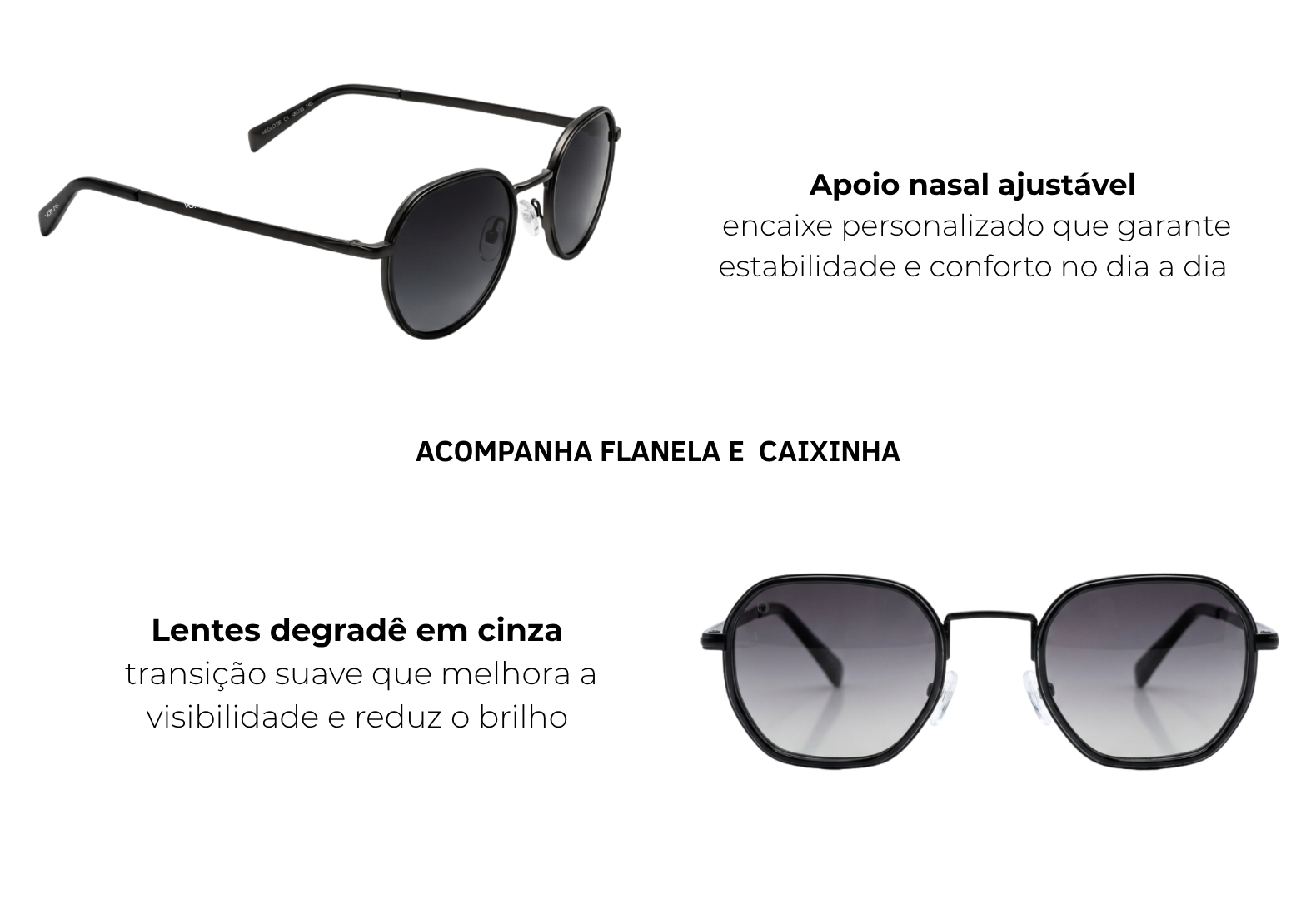 Porque poucos acessórios têm o poder de transformar completamente o visual com tanta facilidade. O Óculos de Sol Premium Eclipse Noir não só protege seus olhos, como também eleva sua presença, transmite confiança e completa qualquer look com estilo refinado.