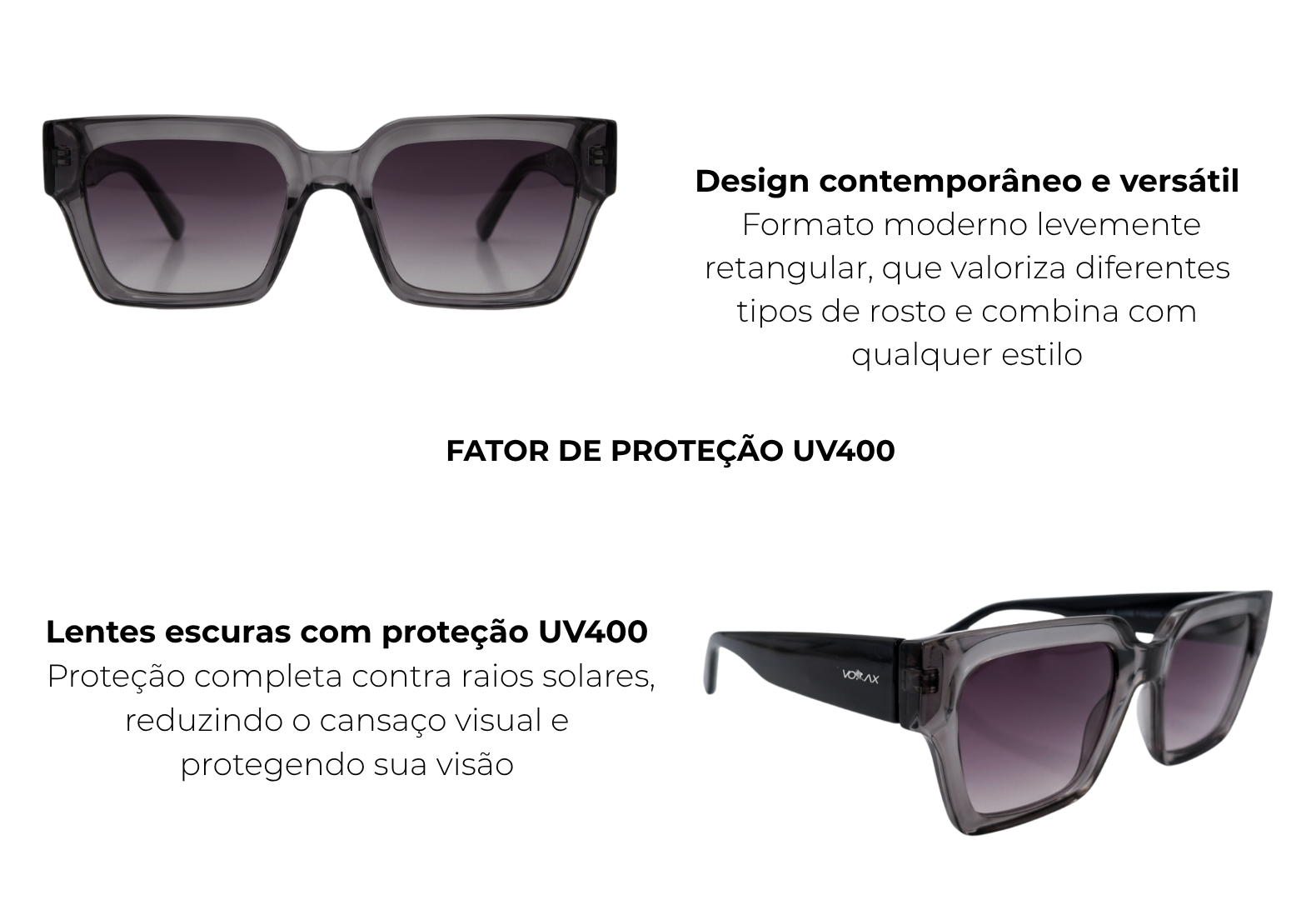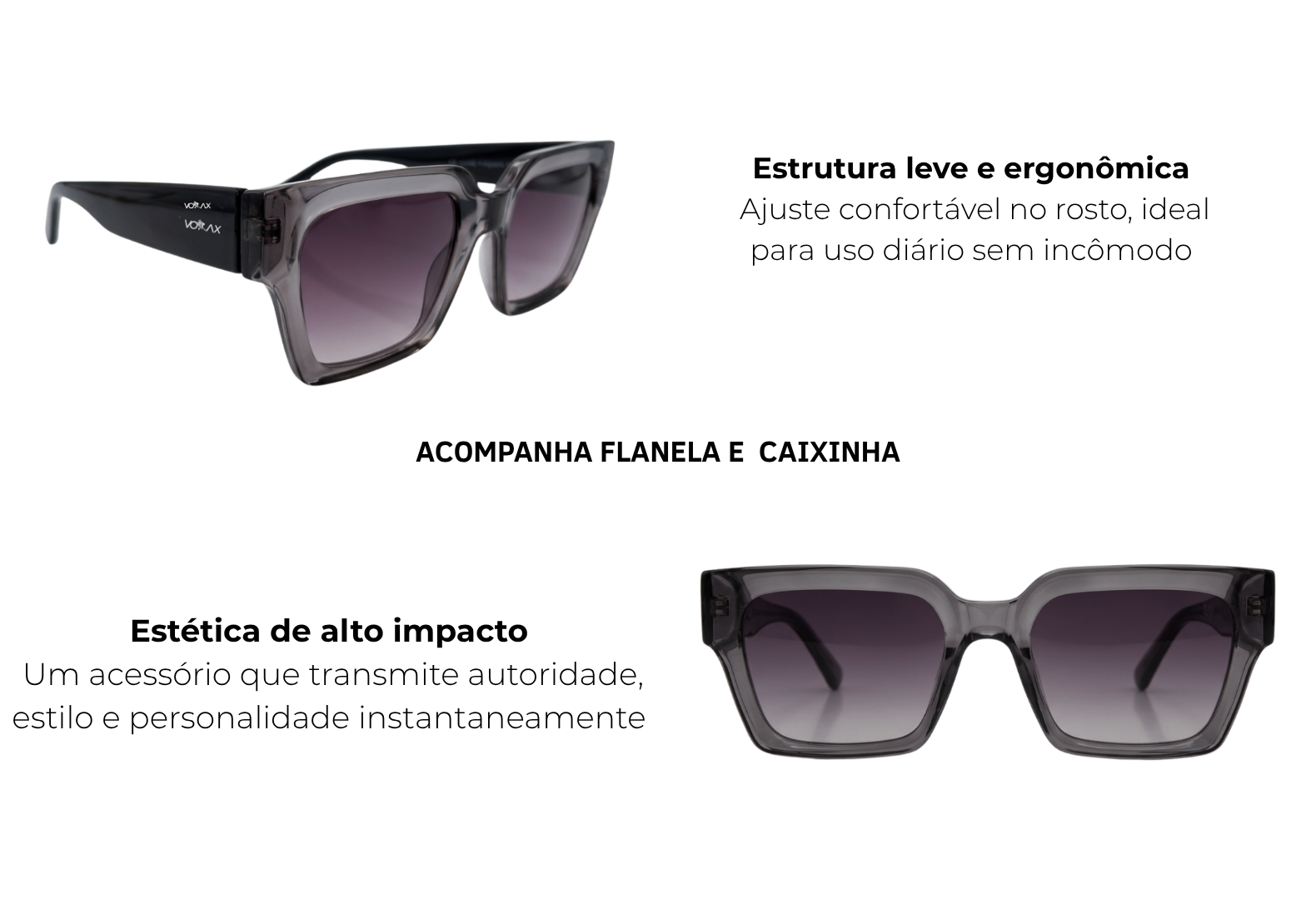 Cor da lente: Degradê em tons de cinza escuro / grafite