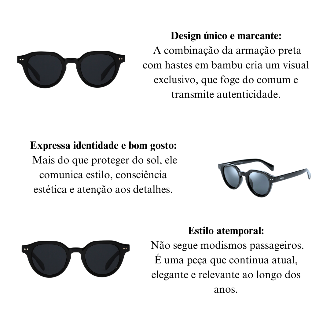 O Óculos de Sol Trindade é a definição perfeita de estilo atemporal. Com design sofisticado e linhas minimalistas, ele traz uma presença marcante sem perder a elegância. Sua armação preta com formato arredondado transmite modernidade e personalidade, tornando-se o acessório ideal para quem quer destacar o visual com discrição e classe.