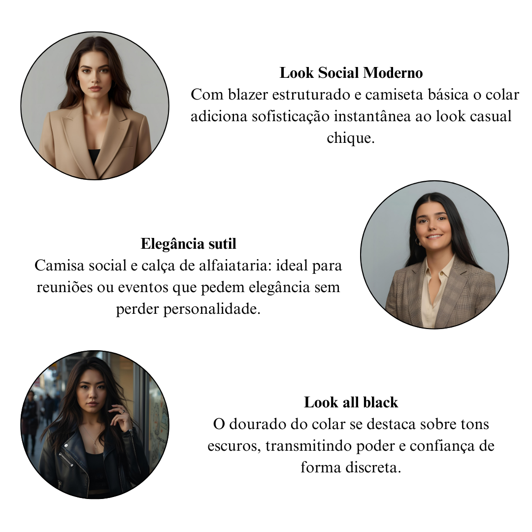 Combine com brincos delicados e elegantes para manter a suavidade. Adicione também anéis finos e minimalistas – perfeitos para reforçar o estilo romântico sem sobrecarregar. Você pode ainda criar um mix de colar, use em sobreposição para criar um visual atual e sofisticado.