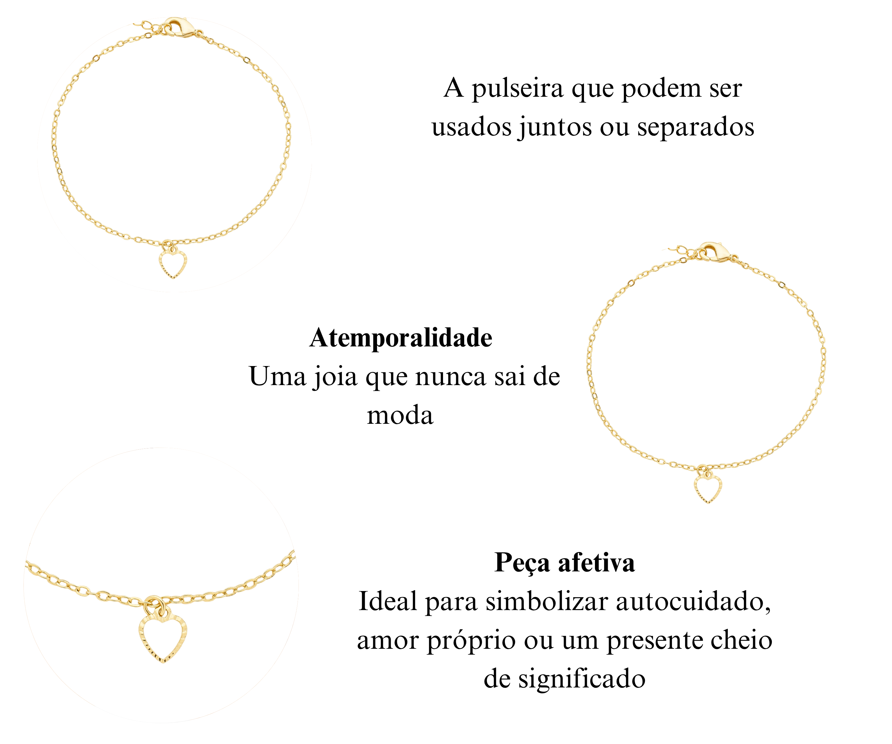 A Pulseira Coração Hoje Eu Sou Meu Amor une beleza, significado e versatilidade em uma única peça. Seja no dia a dia ou em ocasiões especiais, ele funciona como um lembrete constante de amor — seja por você mesma ou por quem o presenteou. Além disso, é uma joia atemporal, que nunca perde o valor estético e emocional, tornando-se uma escolha certeira para qualquer momento.