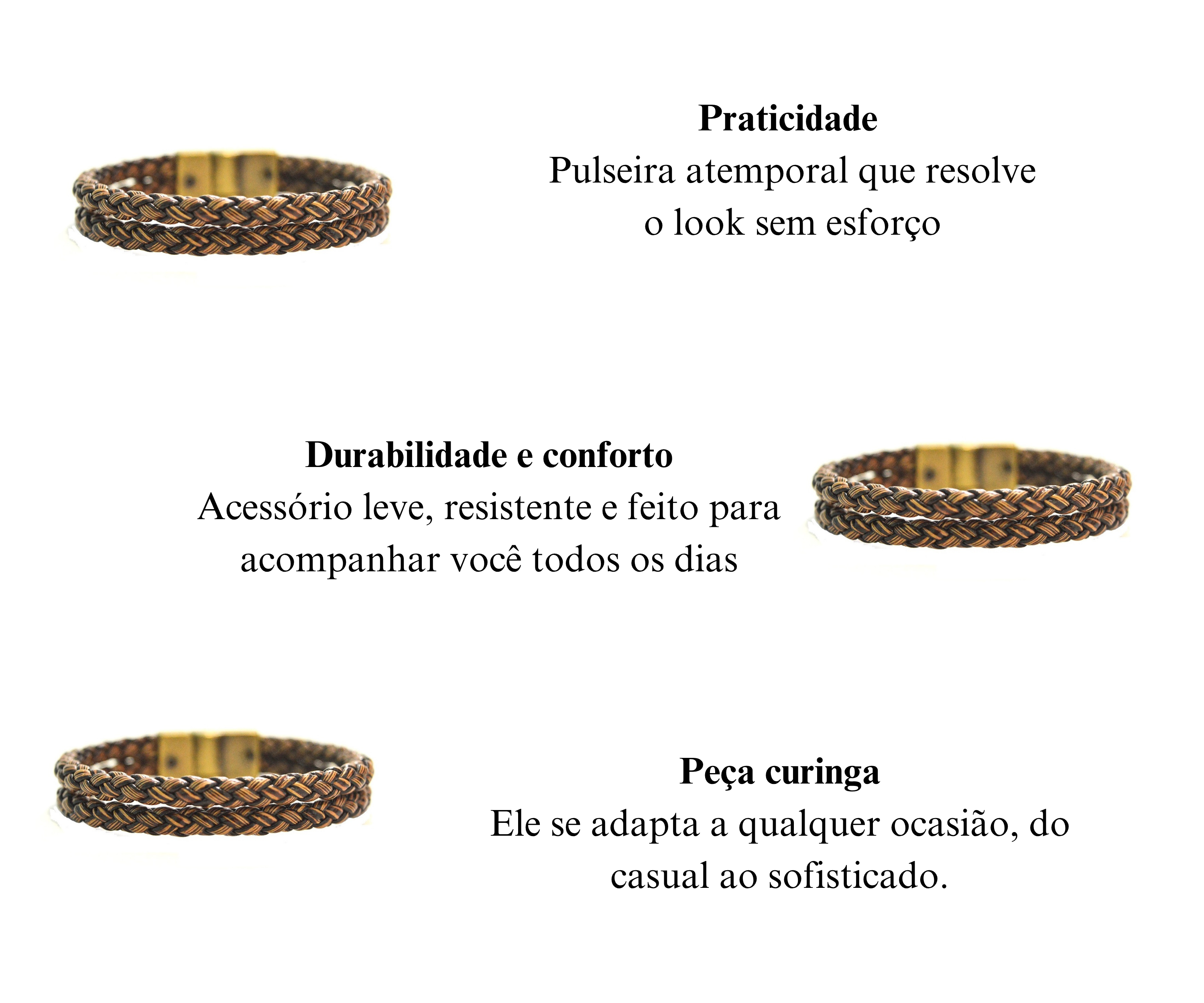 A Pulseira Couro Marrom Edge foi feita para quem entende que estilo é atitude. Com design robusto e acabamento impecável, ela une a força do couro legítimo com o toque moderno do fecho metálico, criando um visual que transmite confiança e personalidade. É o tipo de acessório que fala por você, sem precisar de palavras.