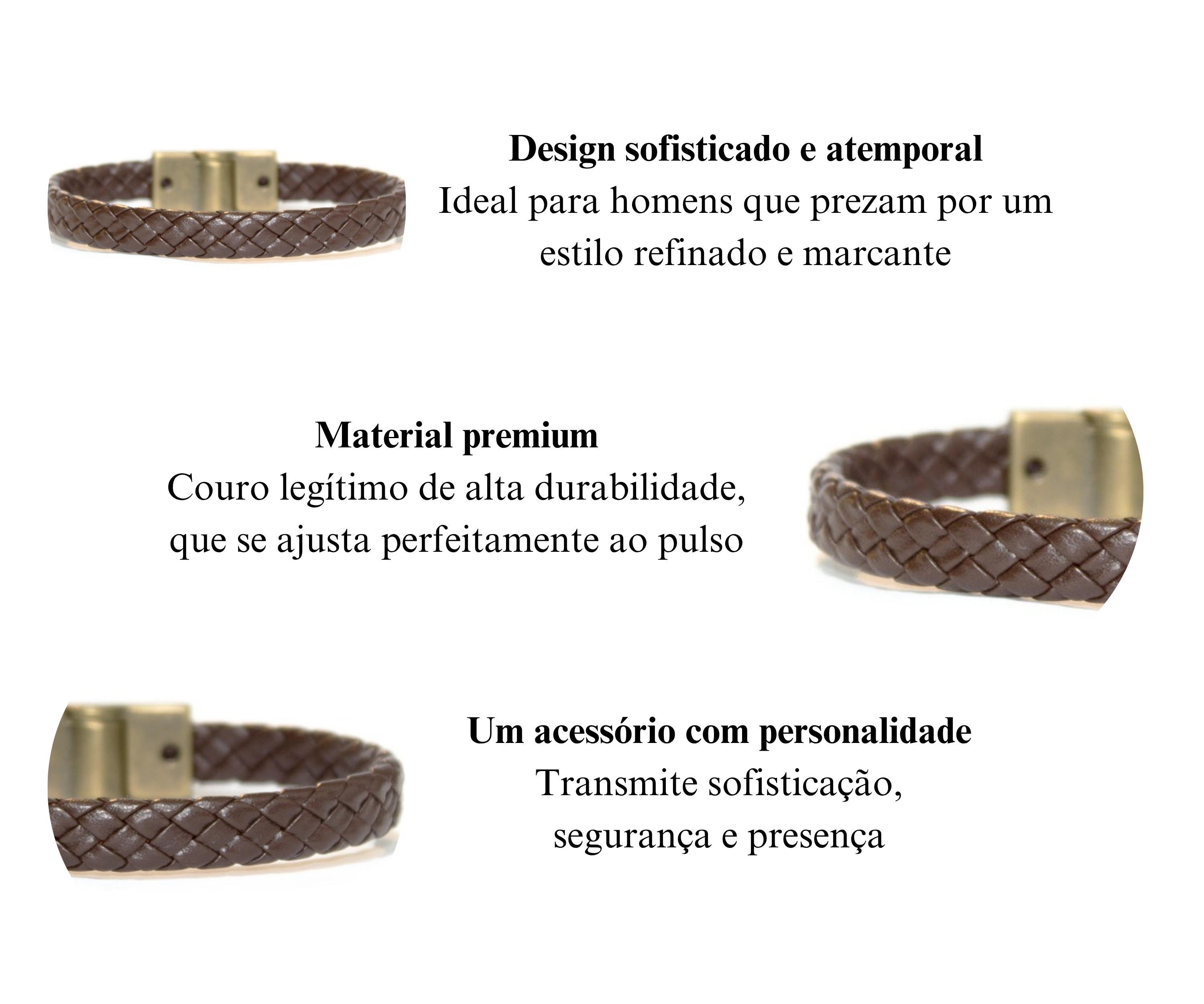 Seu fecho ajustável em aço inoxidável garante praticidade, resistência e um encaixe confortável no pulso. Seja para o dia a dia ou para ocasiões especiais, a Pulseira Couro Square é o acessório que eleva seu visual a outro nível.
