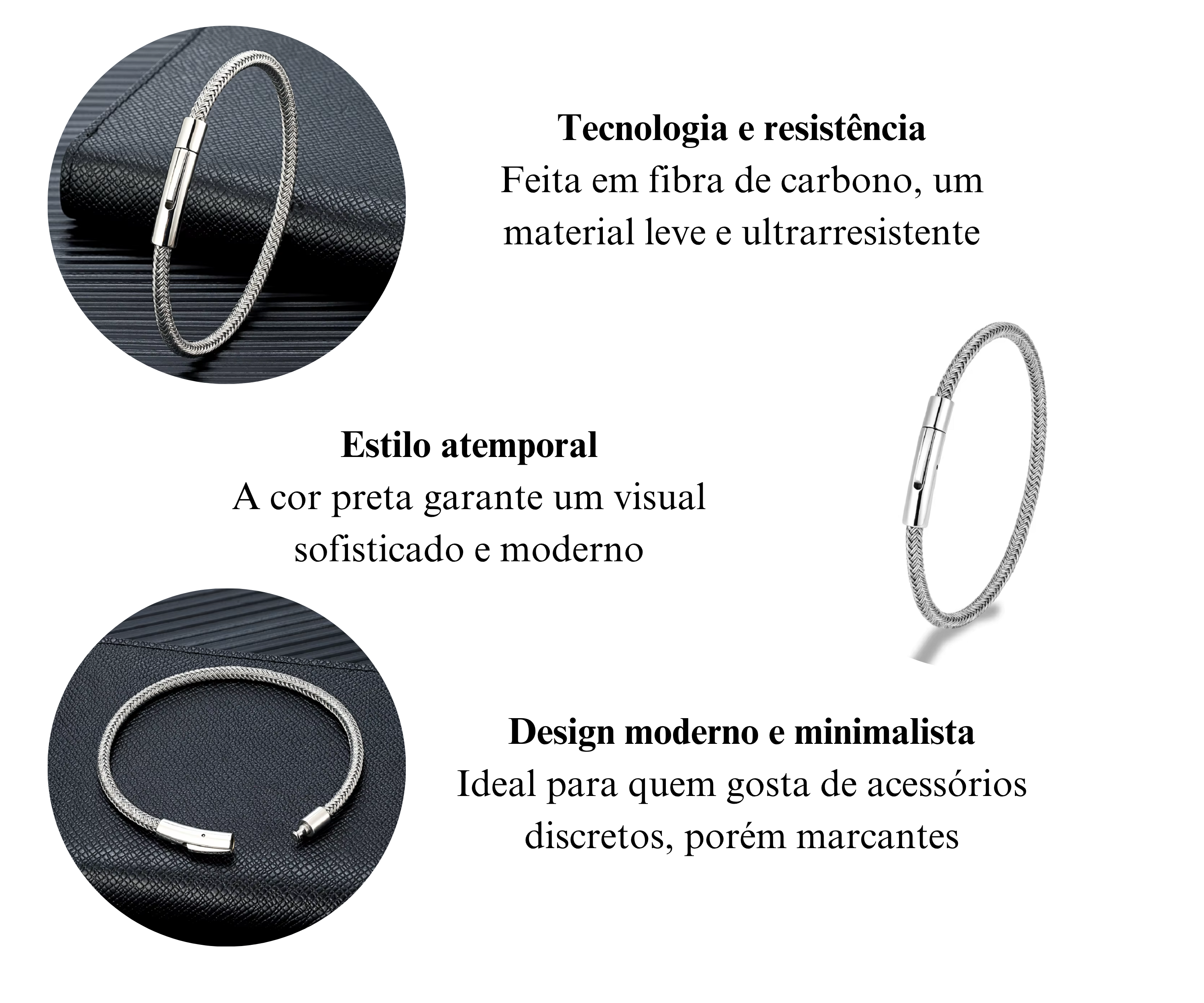 A Pulseira Fibra de Carbono Cinza não é apenas um acessório, mas uma peça indispensável para quem quer deixar sua marca por onde passa. Ela traz estilo, resistência e sofisticação, transformando qualquer look. Não deixe essa peça essencial escapar.