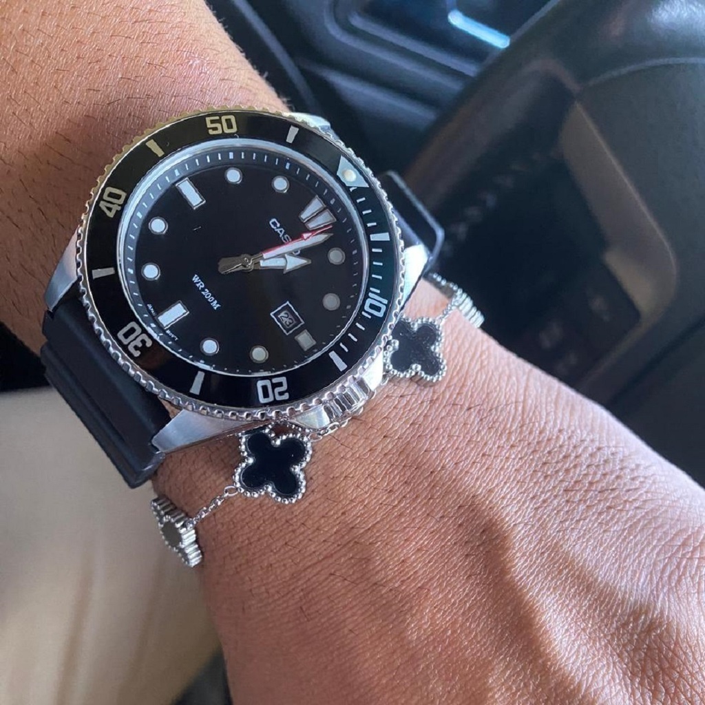 A Pulseira Prateada 5 Trevos Aço Inox une estilo e significado em um só acessório. Seu design atemporal permite combinações versáteis, elevando qualquer look com um toque de classe e personalidade. Seja para presentear ou para usar no dia a dia, essa peça é o detalhe que transforma o visual sem esforço.