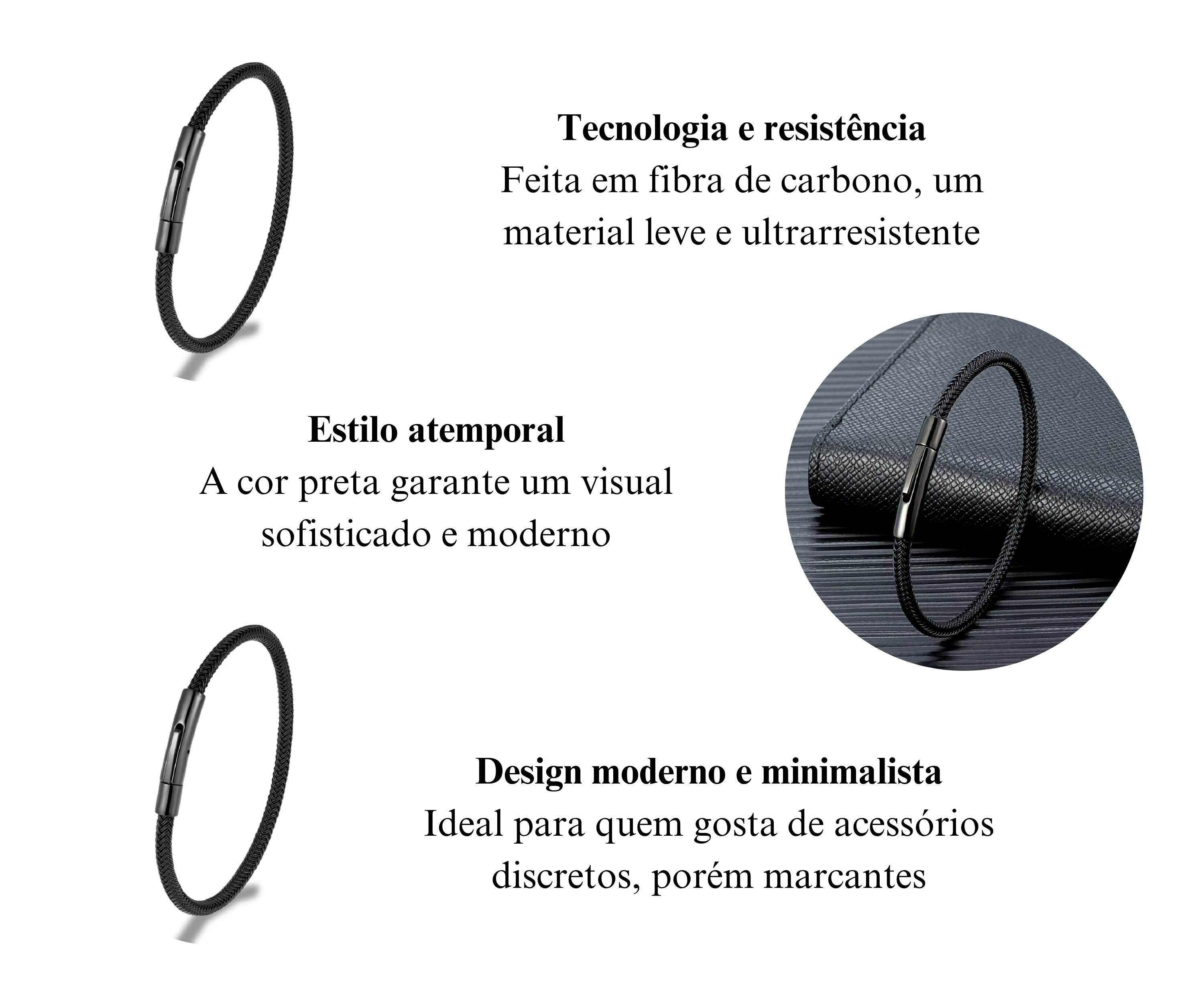 A Pulseira Fibra de Carbono Preto não é apenas um acessório, mas uma peça indispensável para quem quer deixar sua marca por onde passa. Ela traz estilo, resistência e sofisticação, transformando qualquer look. Não deixe essa peça essencial escapar.